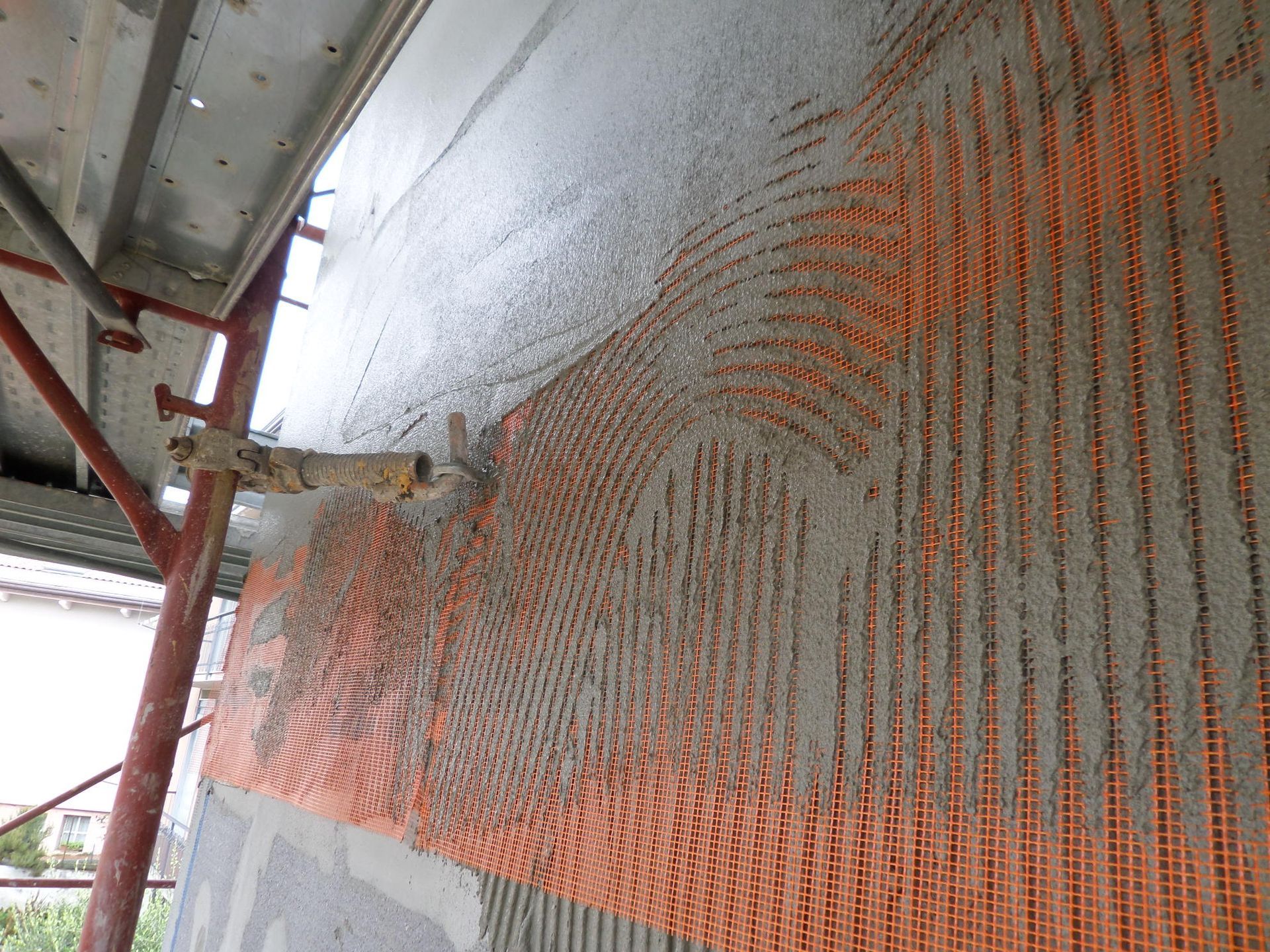 Con rasante cementizio e annego di rete in tessuto di vetro