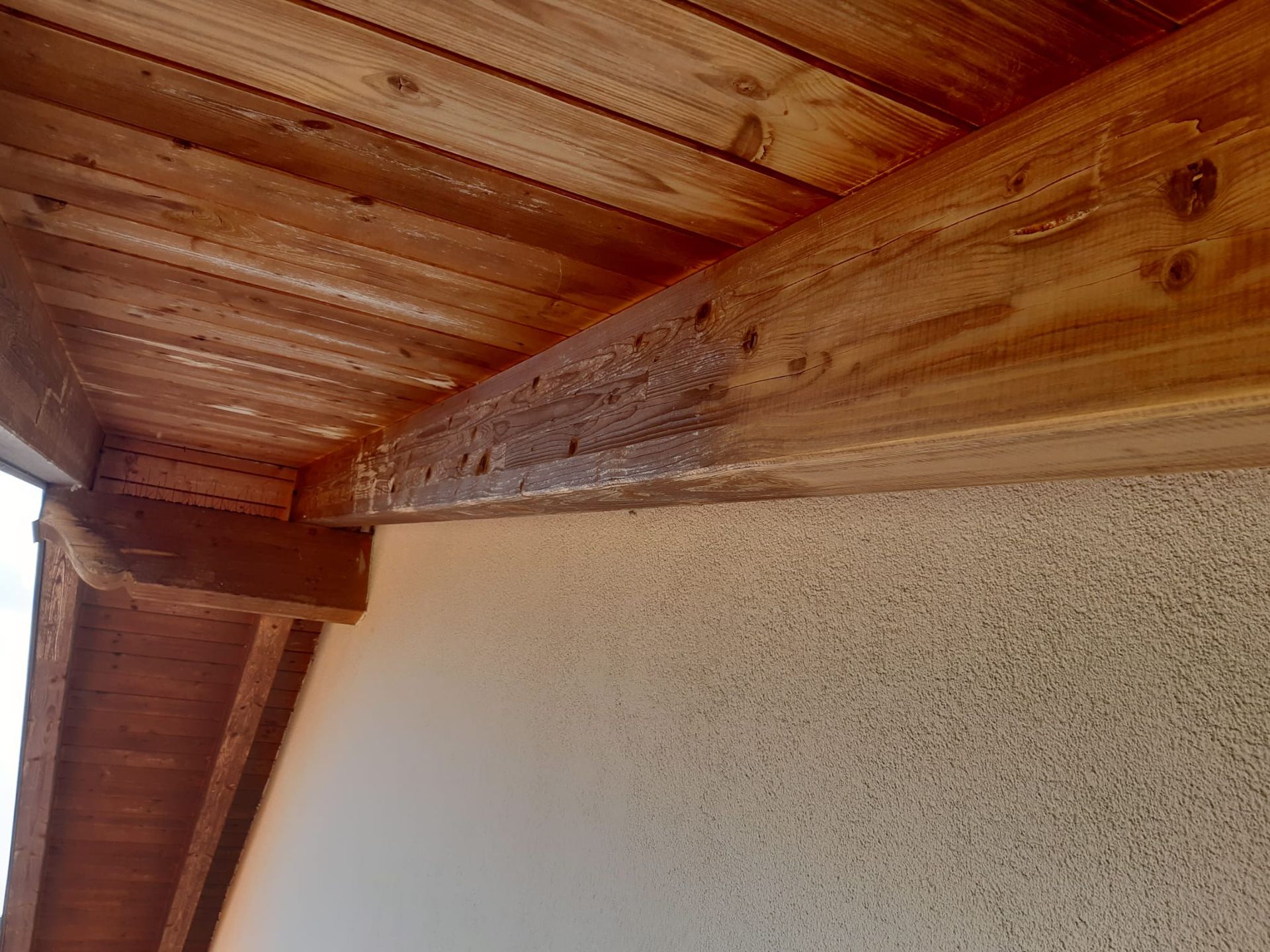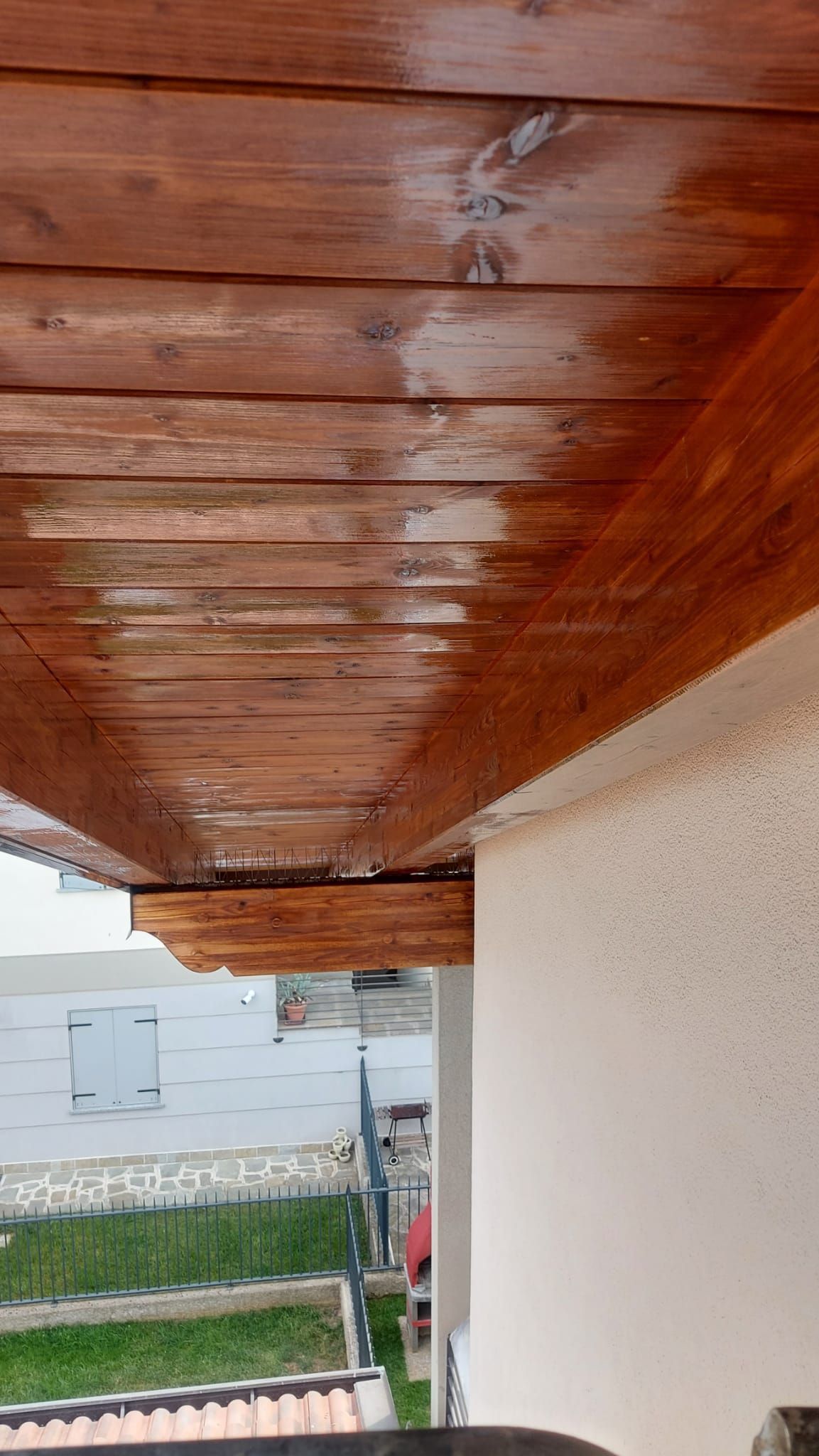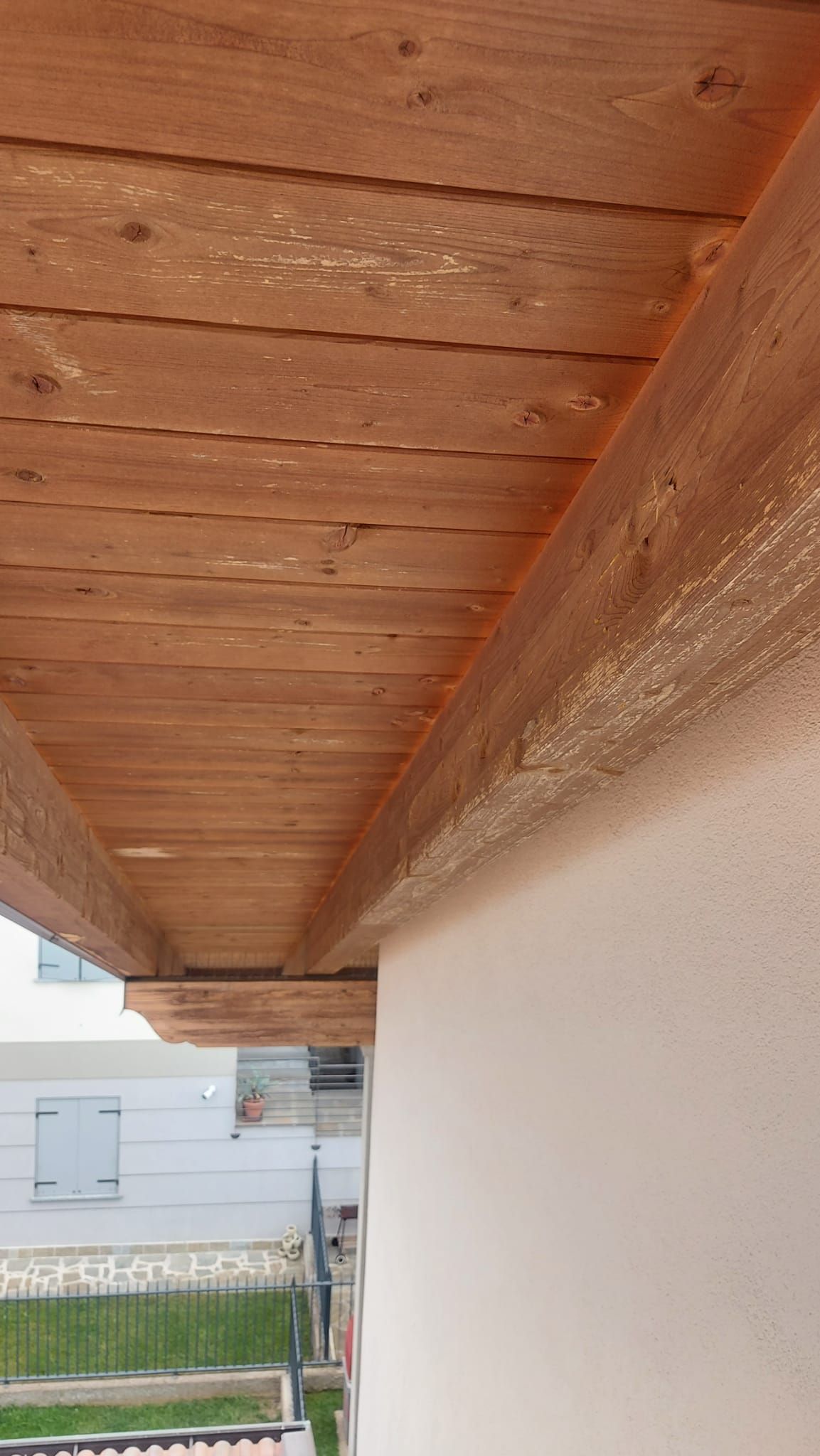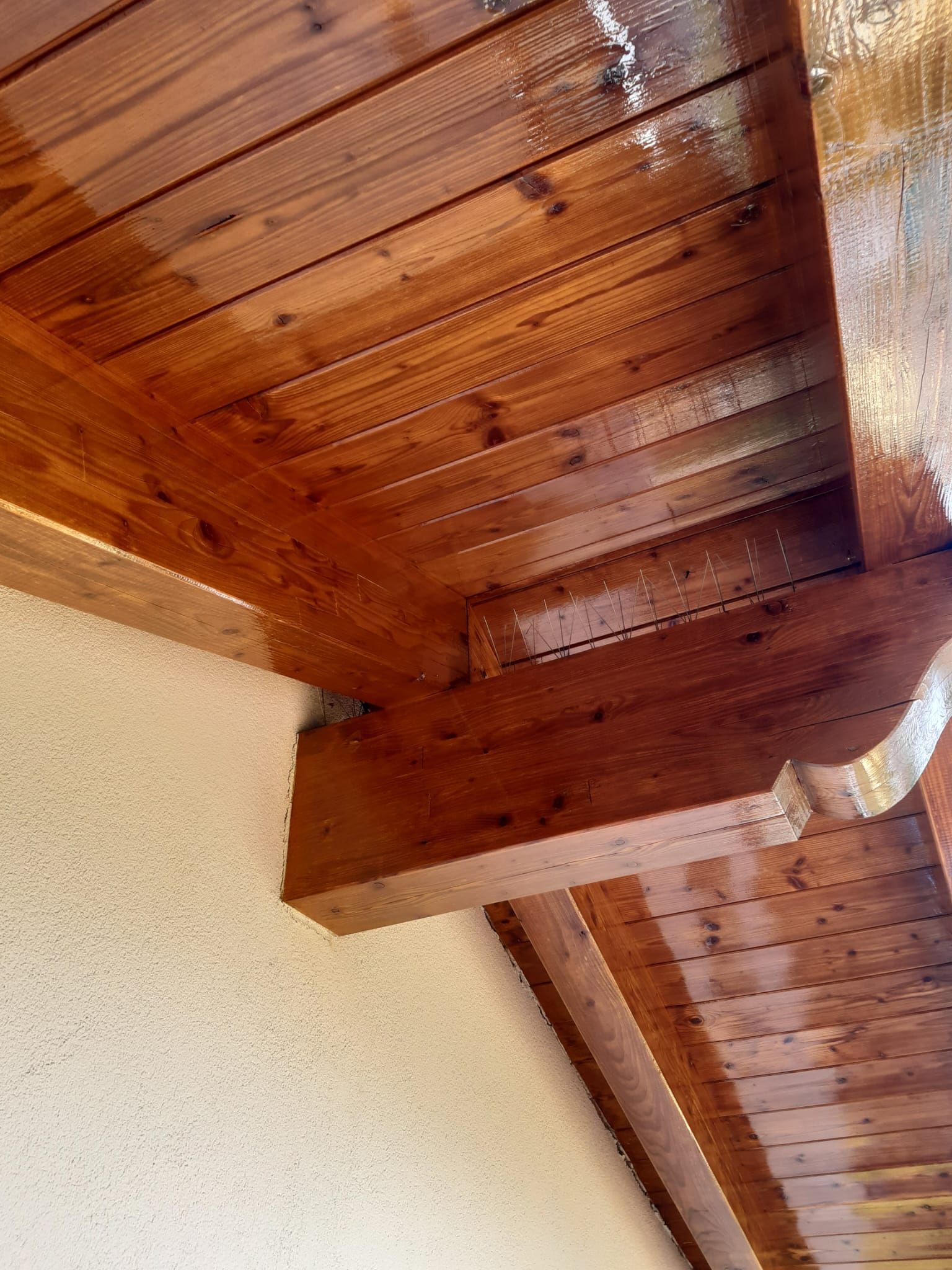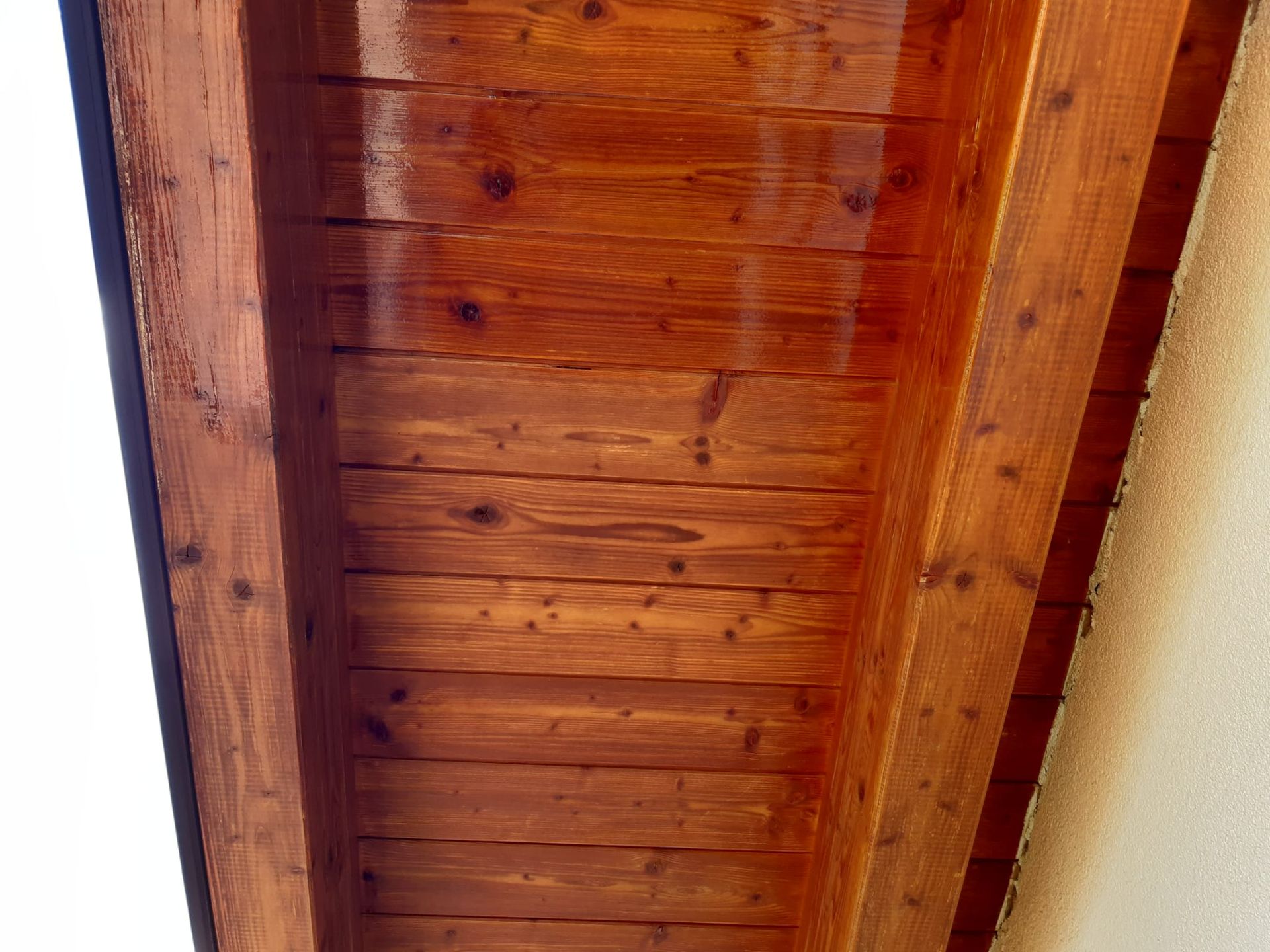 Prima mano di vernice trasparente che ravviva il colore del legno