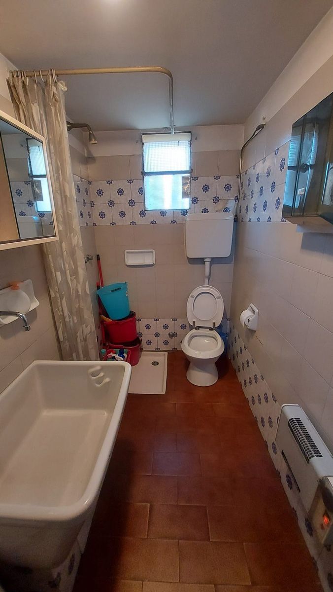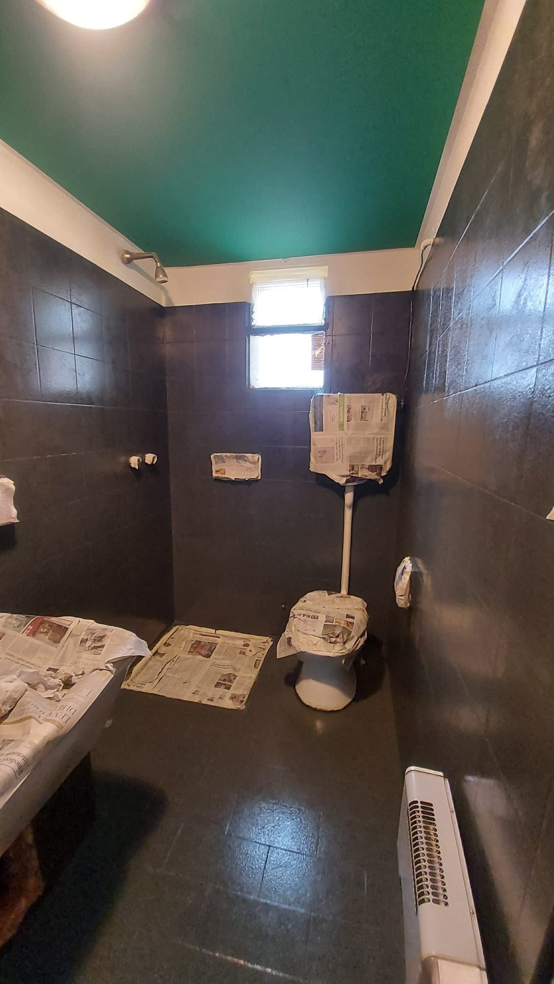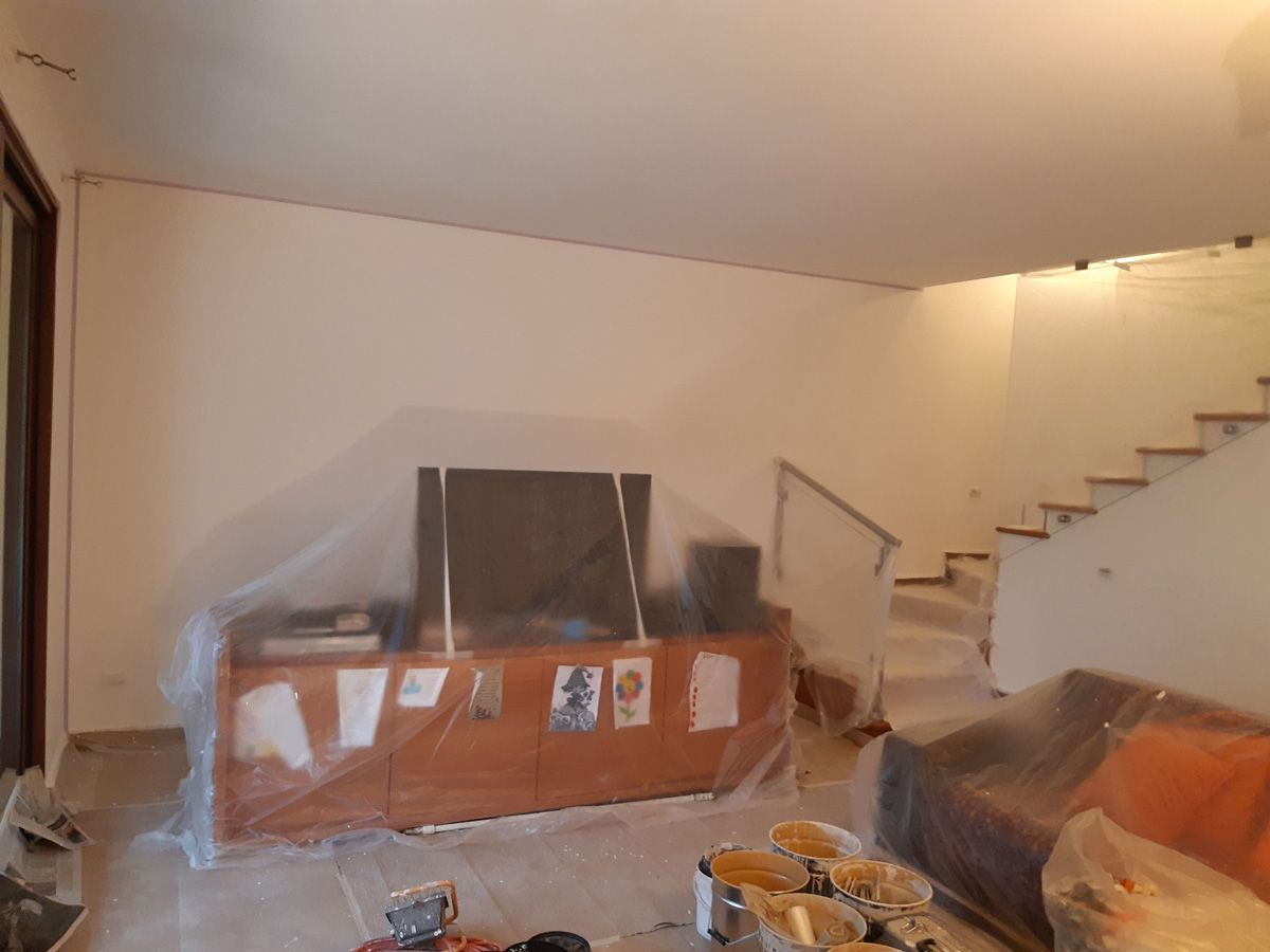 Soffitto colore sociale e pareti verniciate con materiali bicomponenti al posto della sostituzione delle piastrelle (intervento meno invasivo ma di grande effetto)