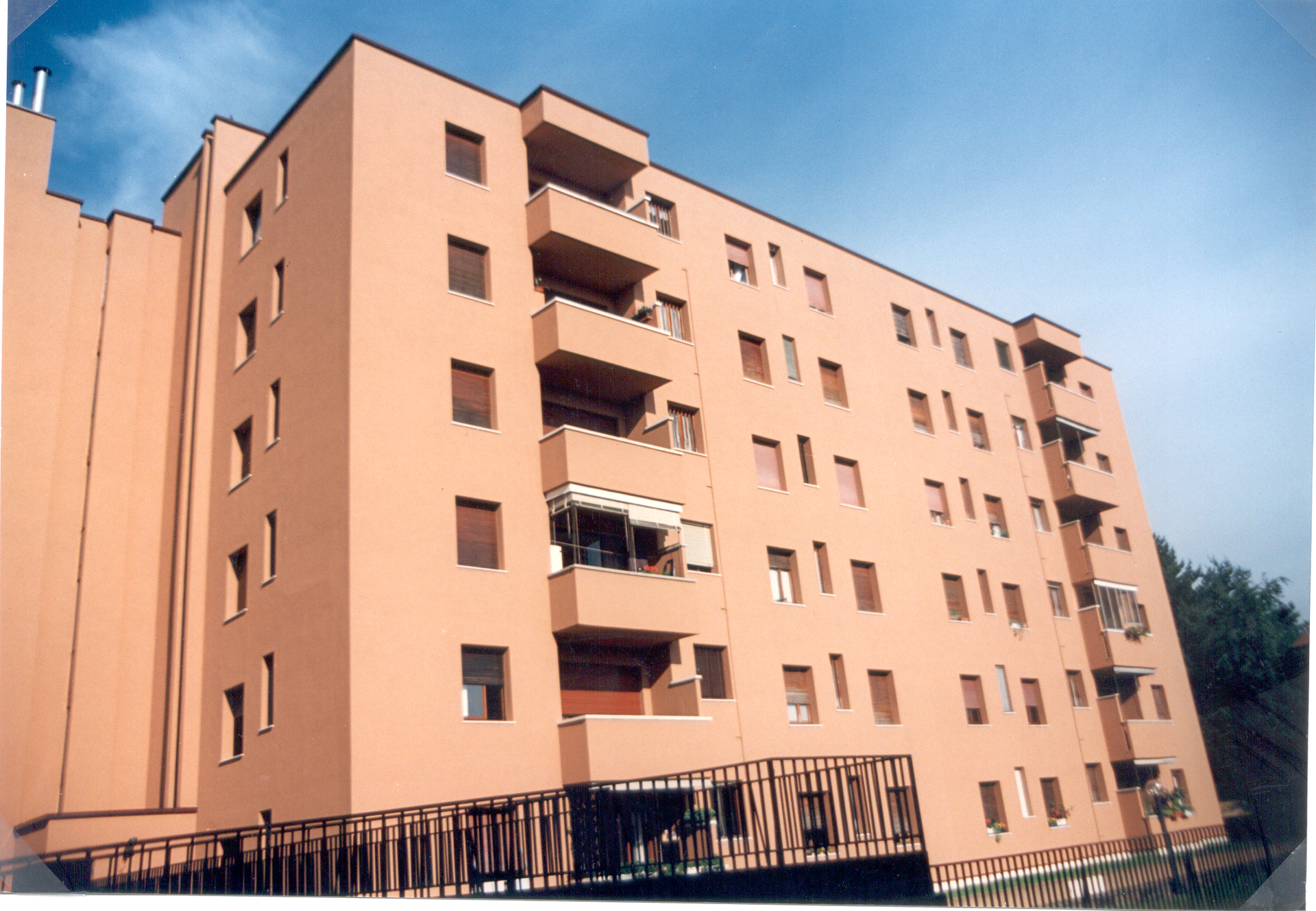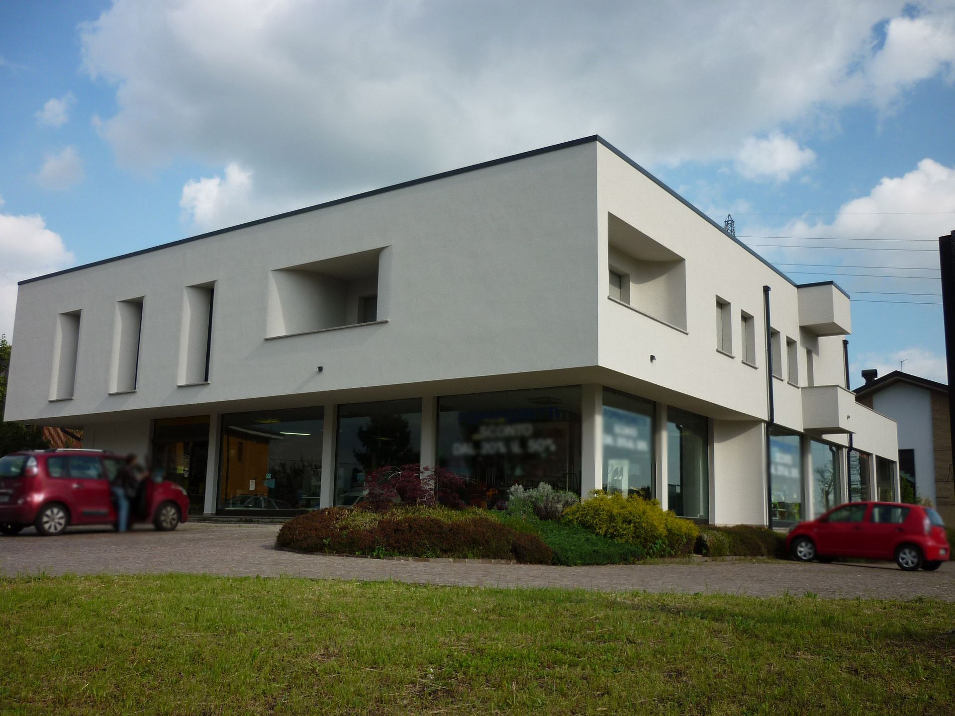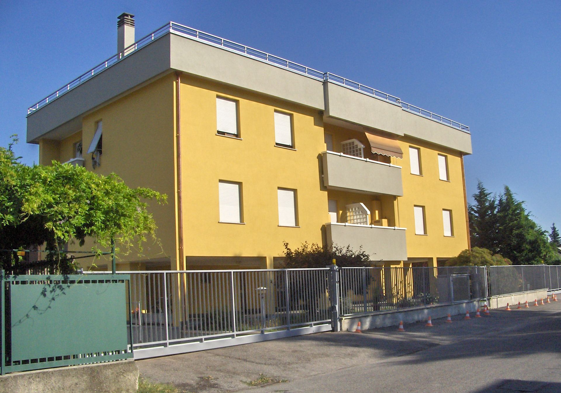 Parti in sporgenza grigie e facciata gialla per spezzare il colore e dare movimento