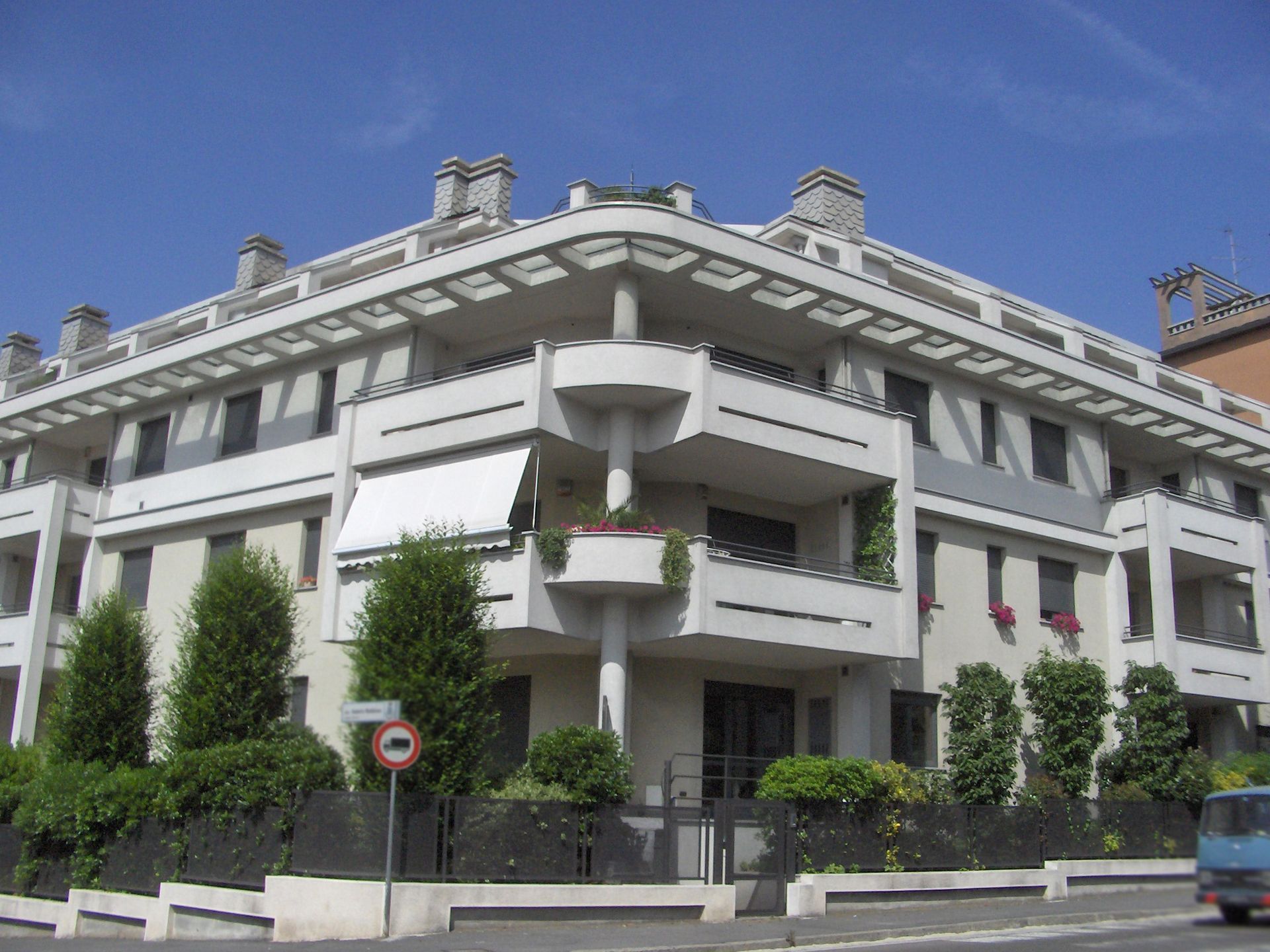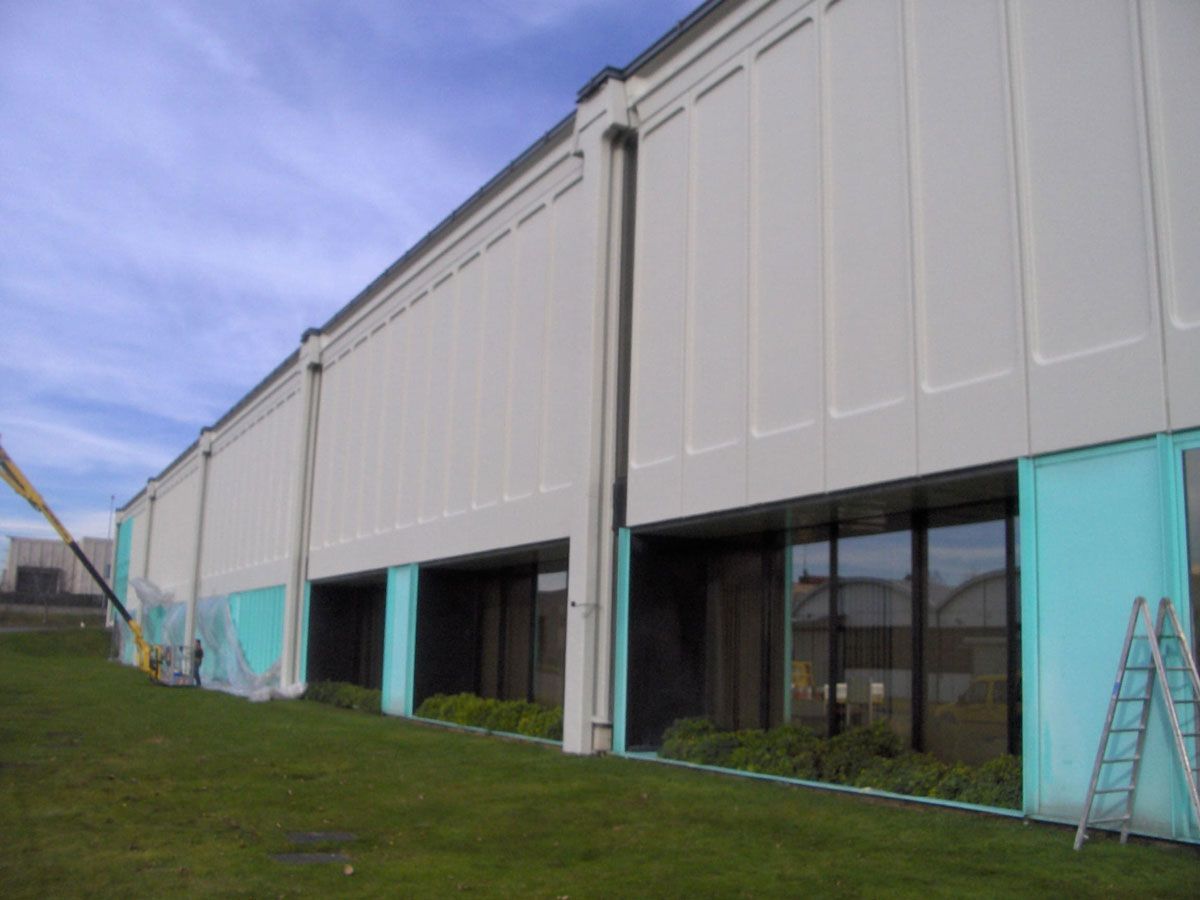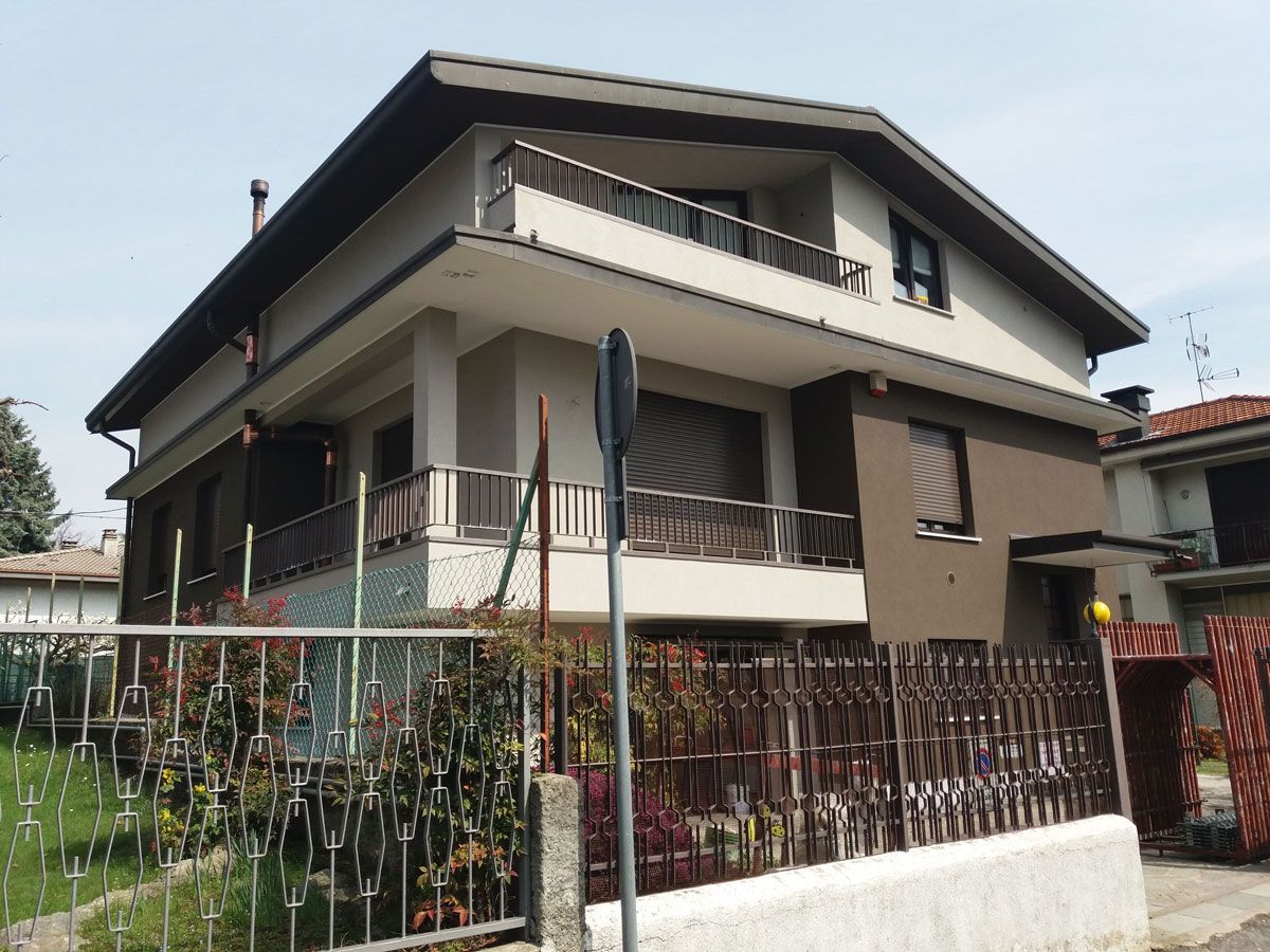 Facciate in tinta chiara e superfici orizzontali colo marrone scuro per modernizzare l'edificio